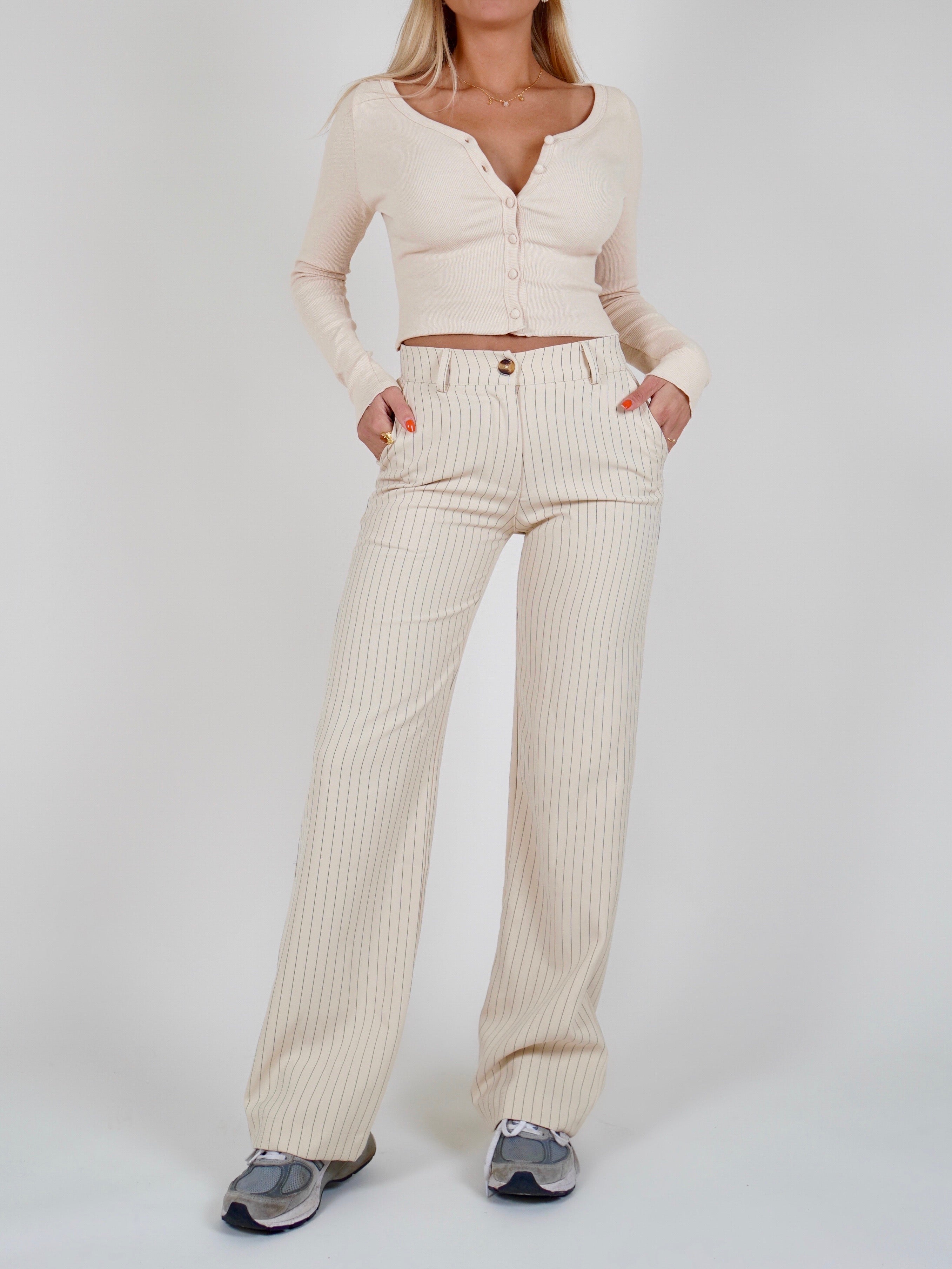 For the weekends, you want to have a pair of pants that can be combined with your favorite tops and sneakers. You can do this with our Levi pants. For example, you can get our Levi pants with stripes, which are perfect for a more formal look where you, for example, mix the pants with a stylish blazer.