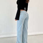 Light blue jeans with the coolest loose fit. The jeans are quite low-waisted.