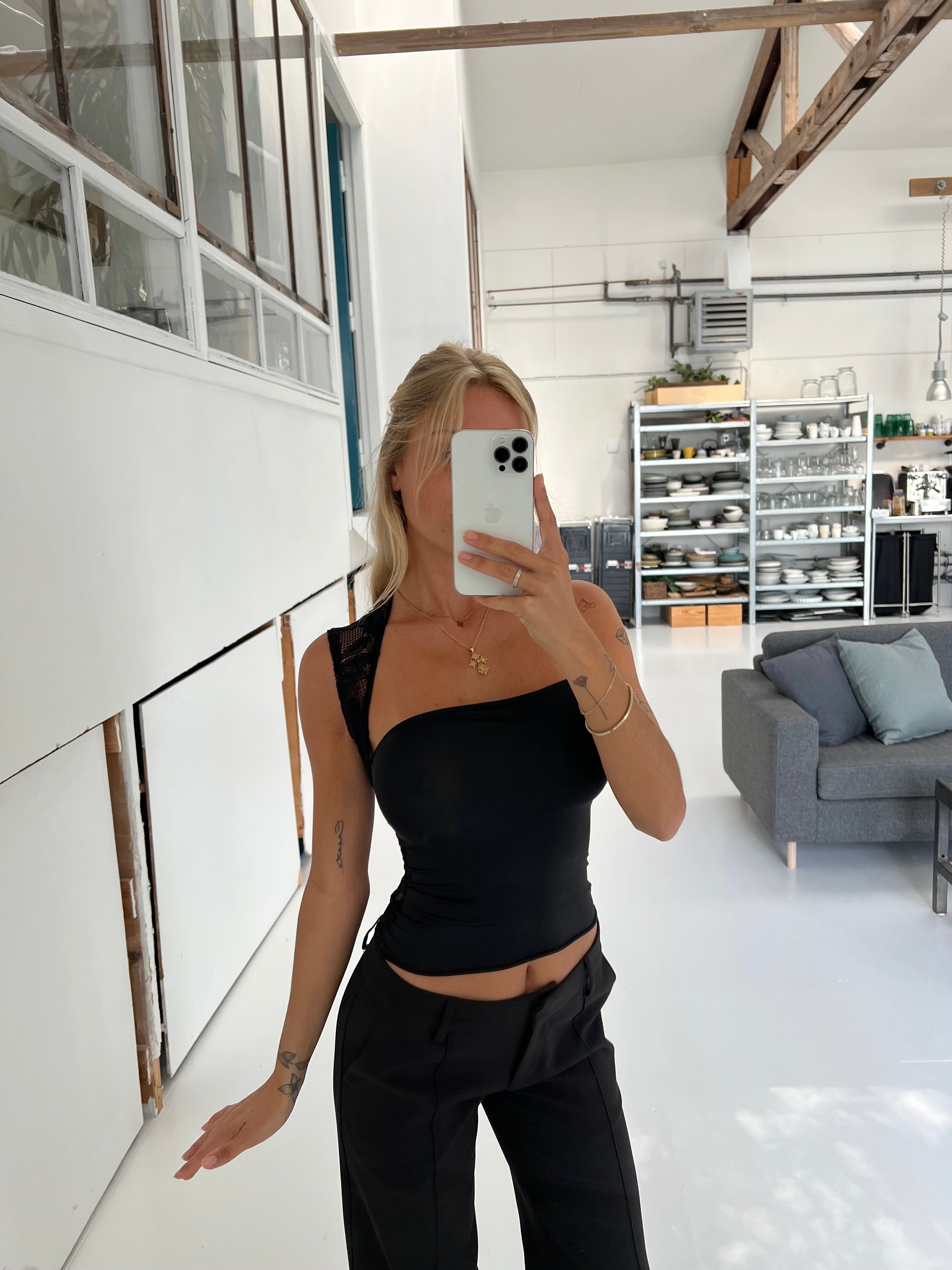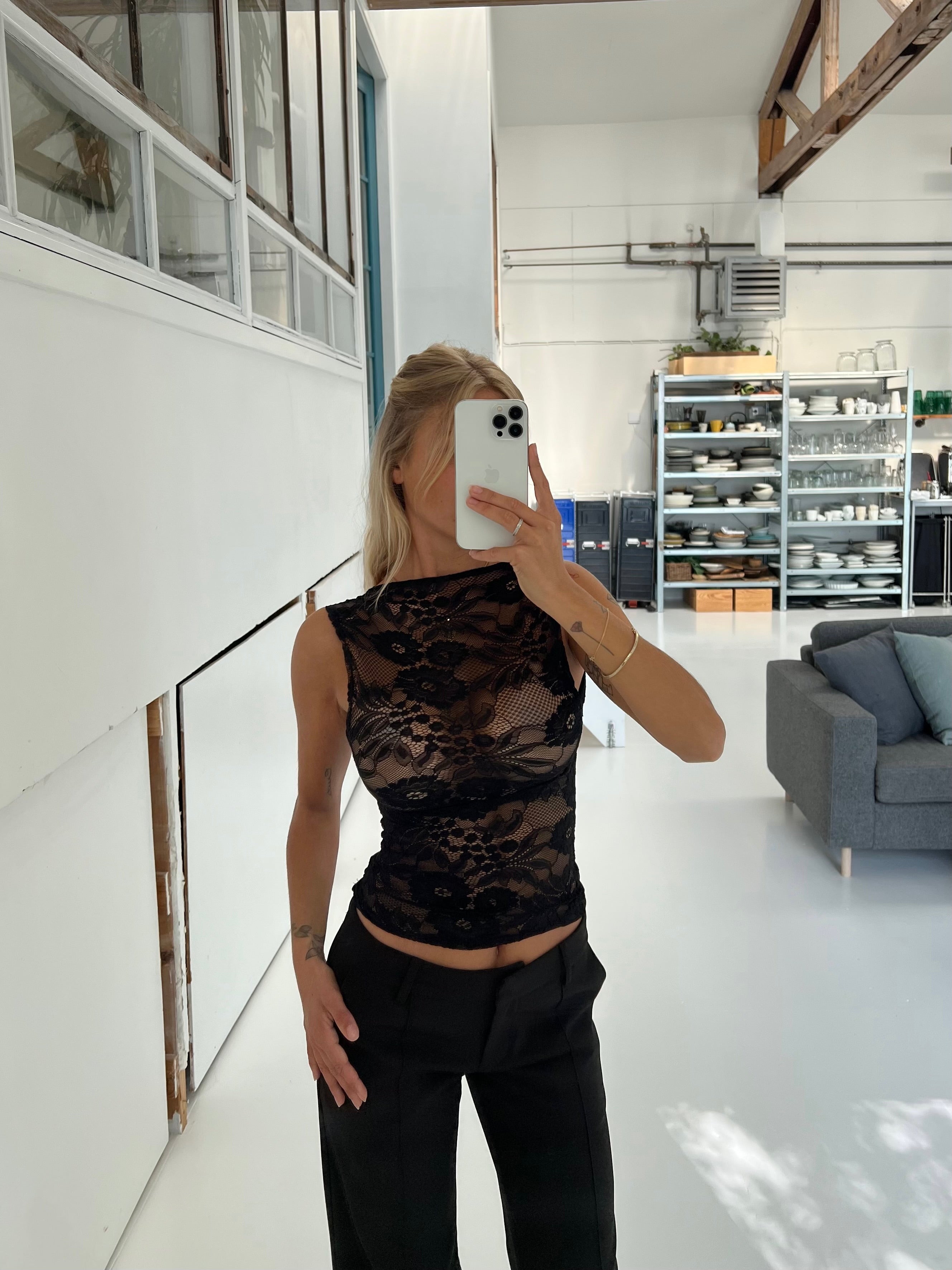 Beautiful lace top that can be worn in two ways. It's made from a highly stretchable material that fits beautifully to the body. The top features lace detailing at the front and across the entire back.