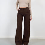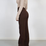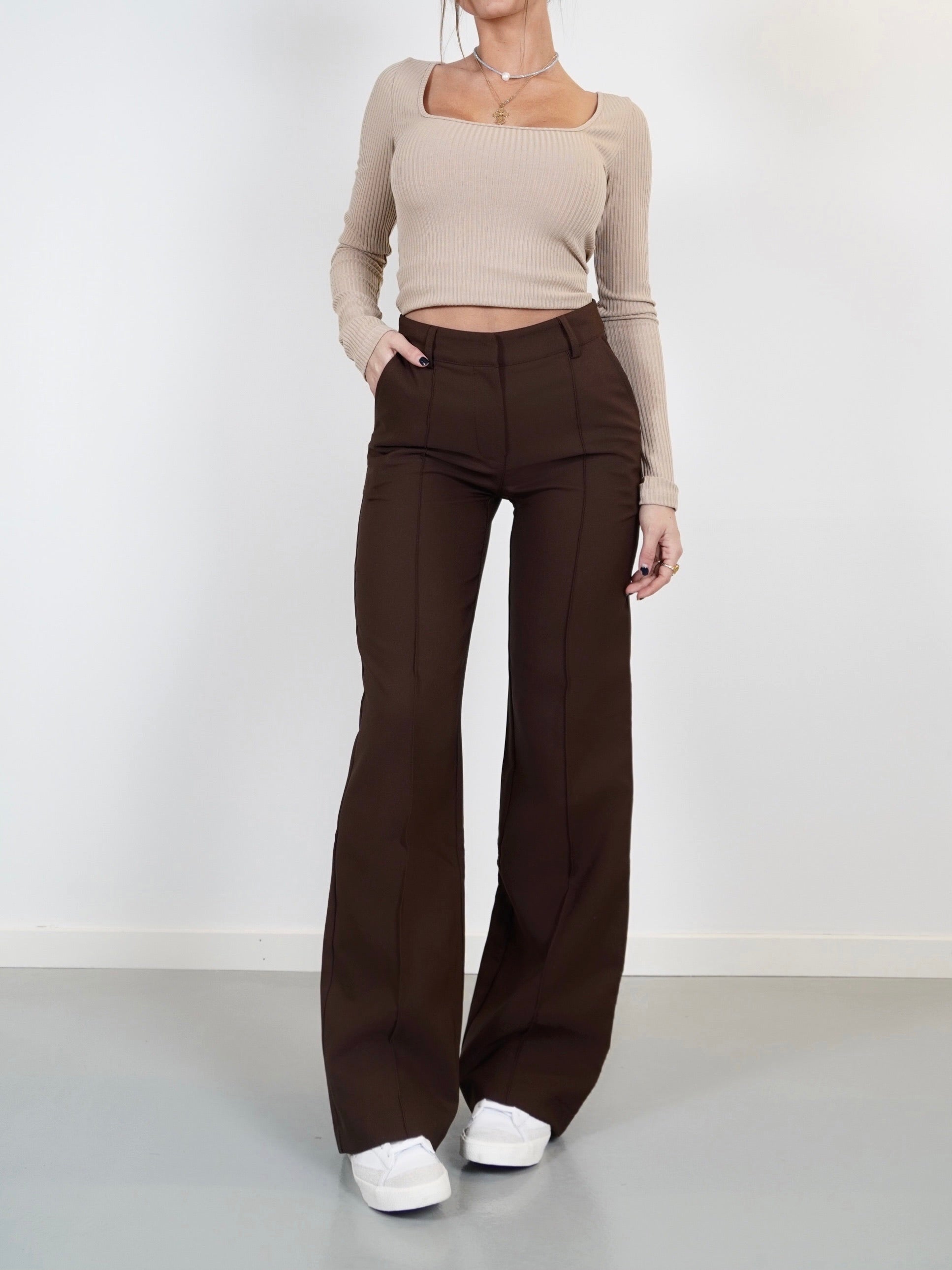 Slightly high-waisted trousers with a bit of stretch. The trousers are a straight model with quite a bit of width. The trousers have belt straps and a nice seam in the middle that gives a classic look. The trousers are made of soft material that is really comfortable and sits very well on the body.