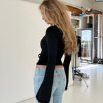 Beautiful wrap top made from the softest material with a lot of stretch, fitting the body perfectly. The top features long sleeves and a deep neckline.