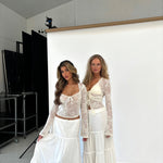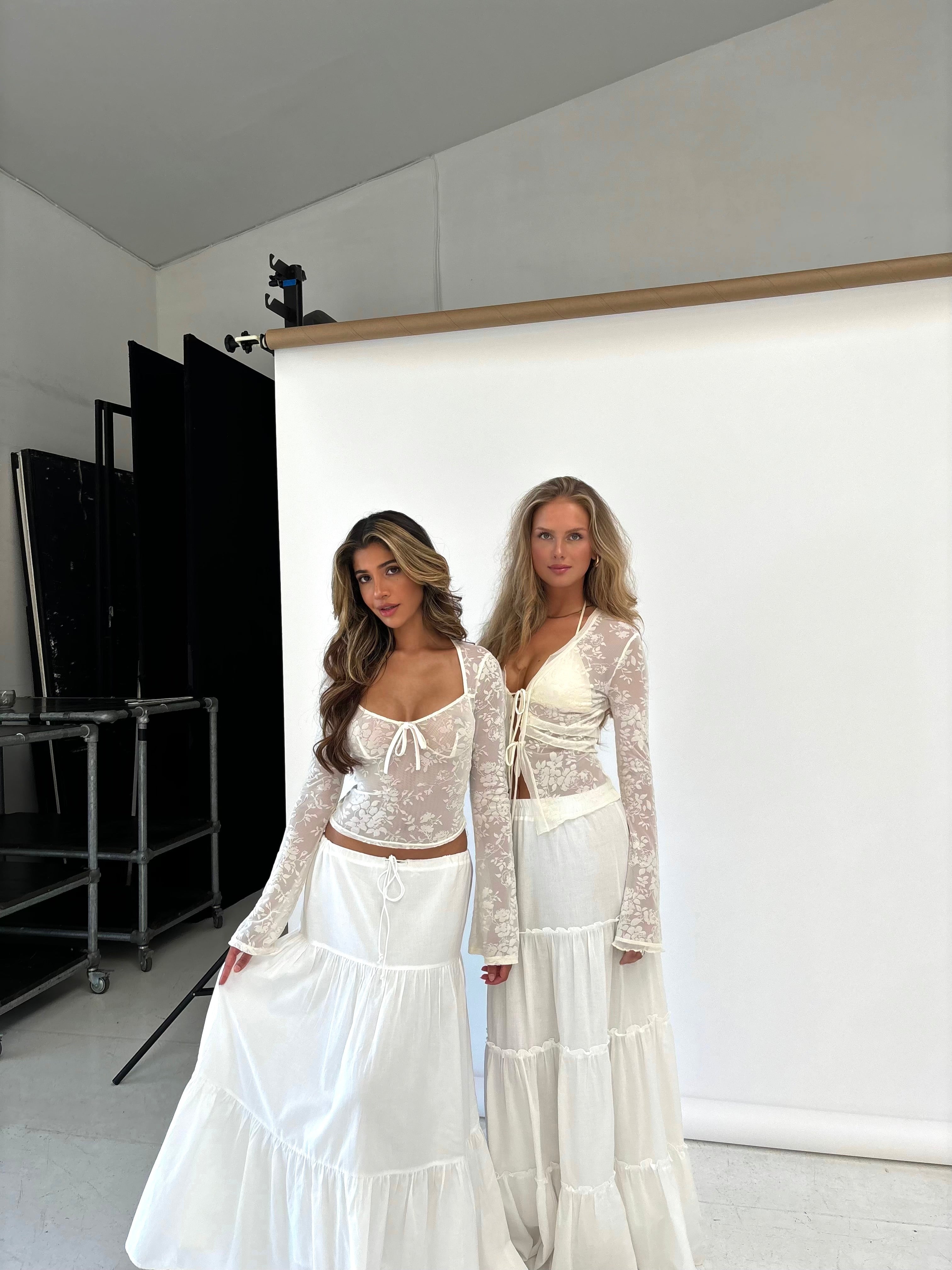 Beautiful cream mesh top with tie strings and long sleeves. The top is made from a soft mesh fabric that is very comfortable to wear.
